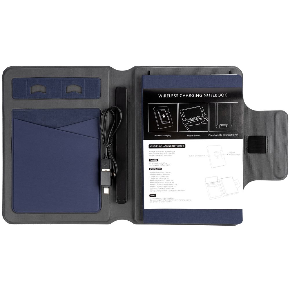 Органайзер с блокнотом и аккумулятором Oiro, синий