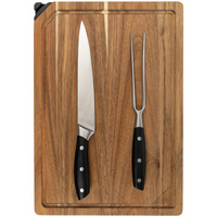 - Материал доска - дерево, акация; нож, вилка - нержавеющая сталь, 18\\0; ручки ножа и вилки - пластик, АБС