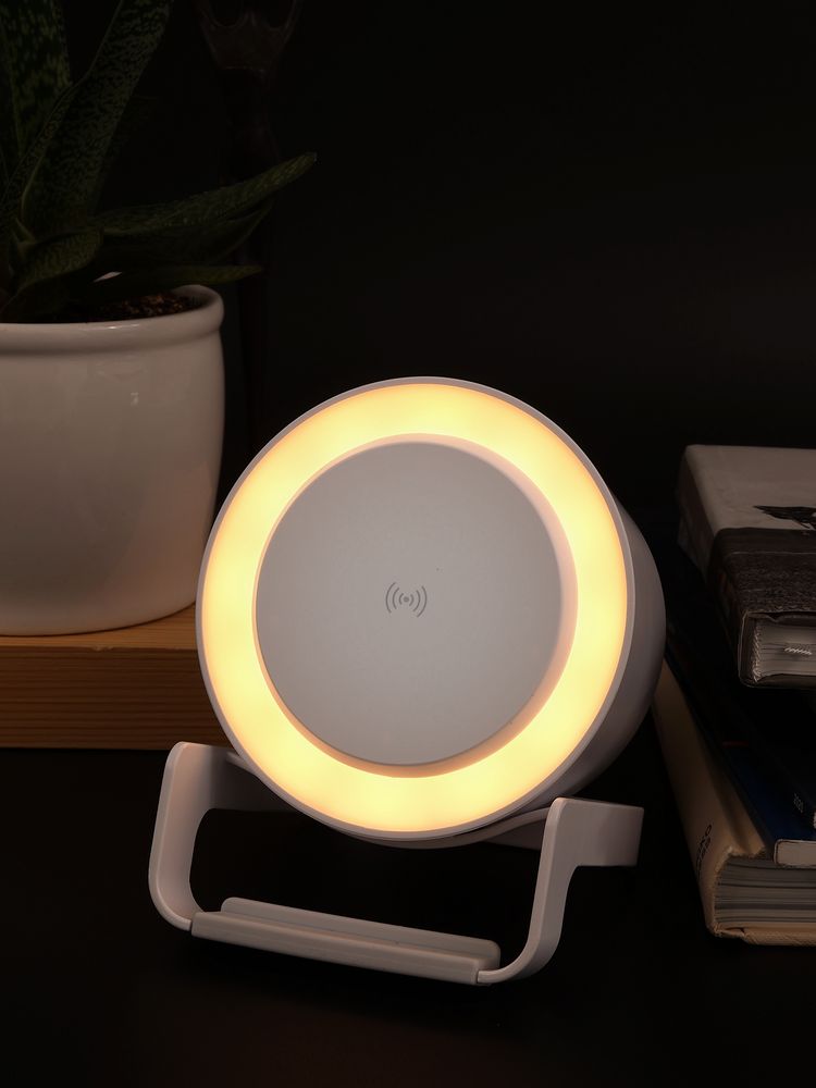Лампа с колонкой и беспроводной зарядкой moonLight, белая