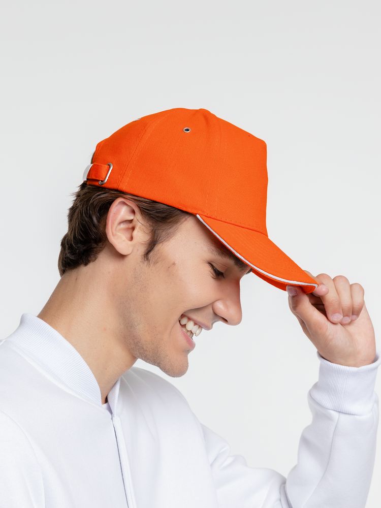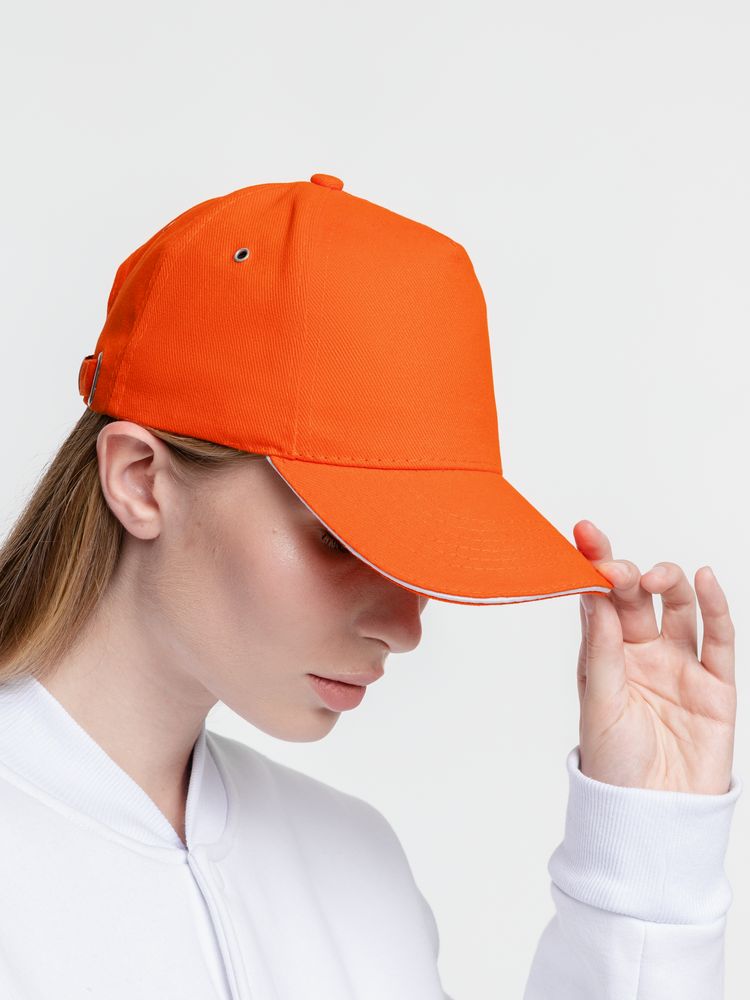 Бейсболка Classic, оранжевая с белым кантом