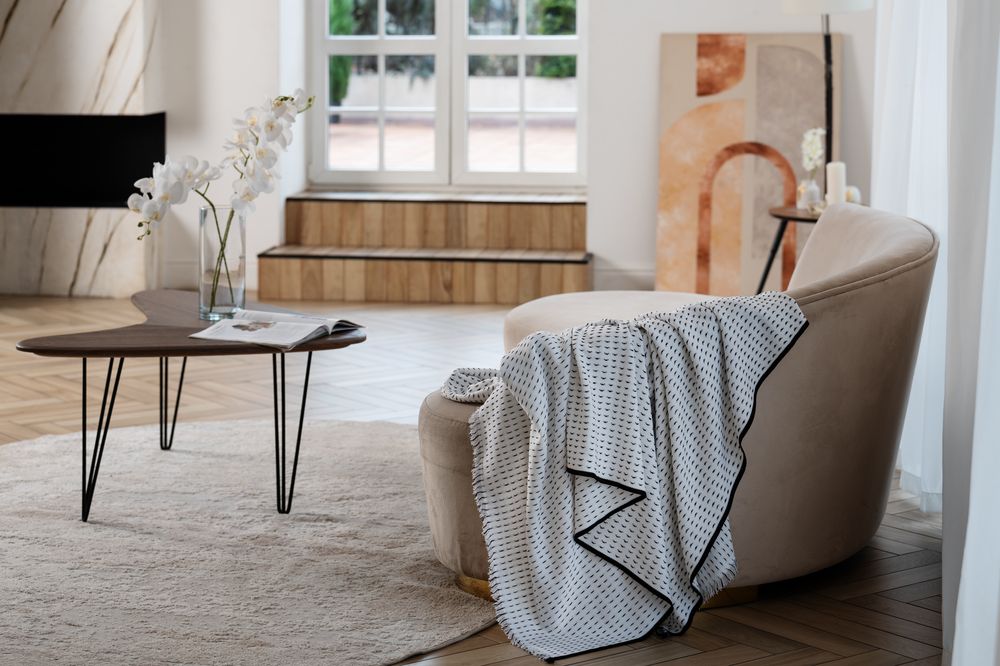 Плед Fringy, белый с черным