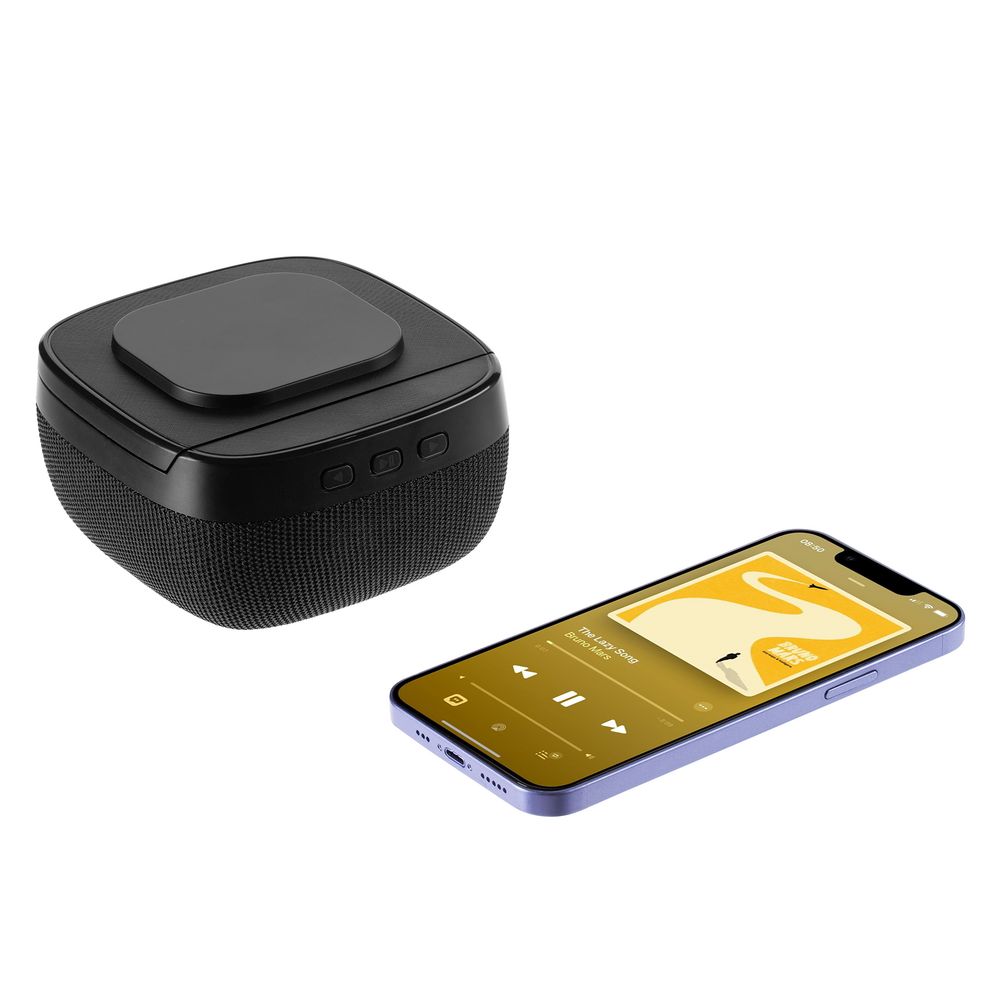 Колонка с беспроводной зарядкой Esca и подсветкой логотипа, черная