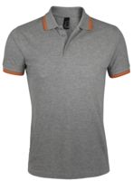Рубашка поло мужская Pasadena Men 200 с контрастной отделкой, серый меланж/оранжевый, размер M