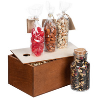 - Материал чай - стекло, пробка; ящик, наполнитель - дерево; арахис, вишня, миндаль - полиэтилен