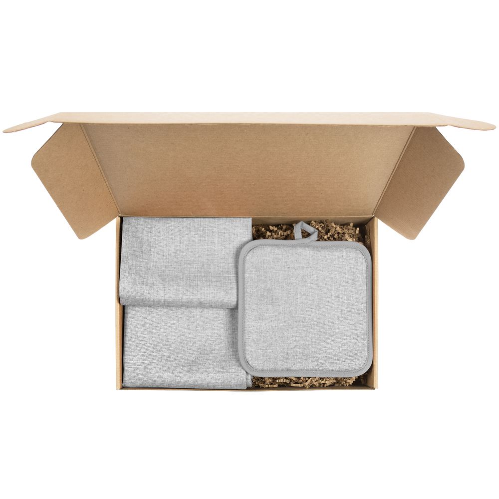 - Материал салфетка - полиэстер 100%; прихватка - полиэстер 100%; коробка - микрогофрокартон, плотность 385 г/м²