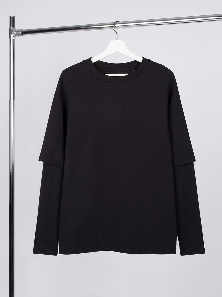 Футболка оверсайз с двойным рукавом Kosmos, черная, размер M/L