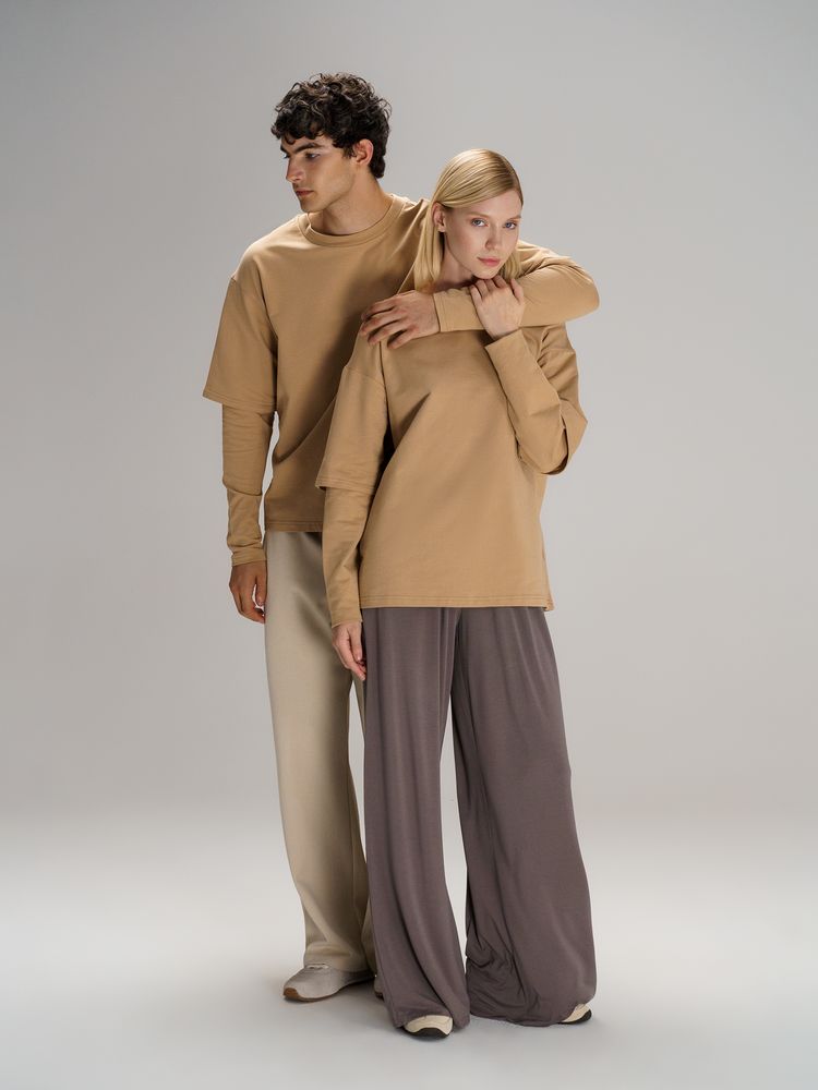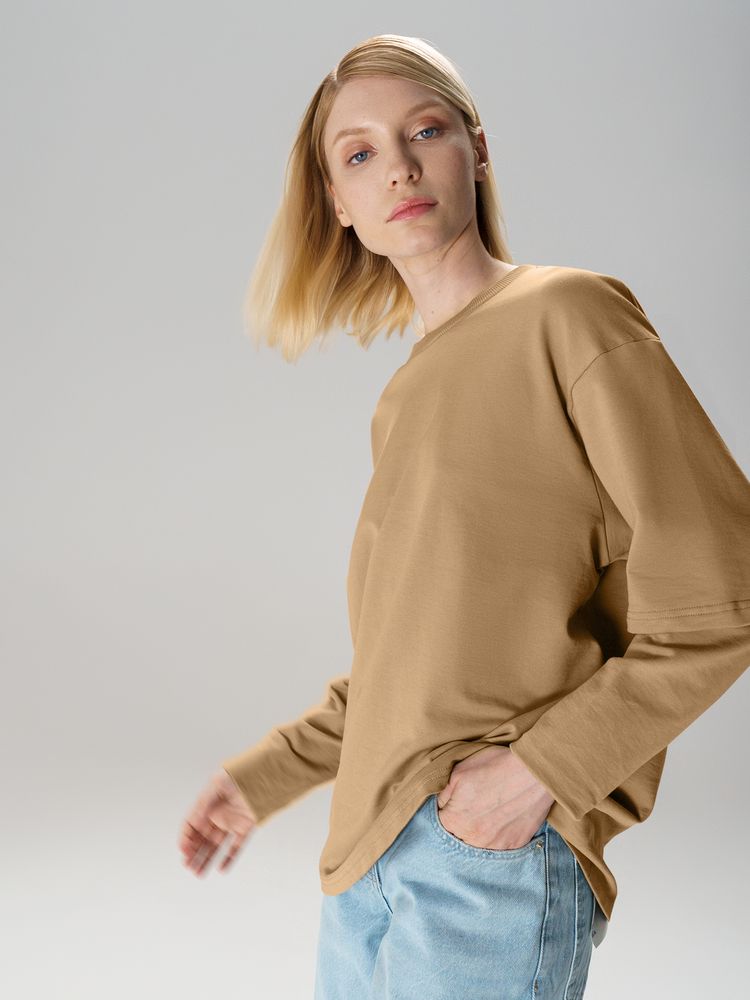 Футболка оверсайз с двойным рукавом Kosmos, бежевая, размер XL/XXL