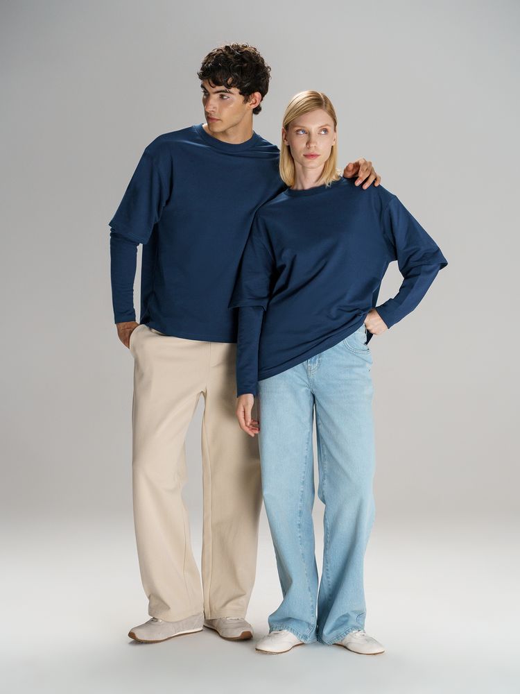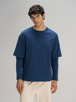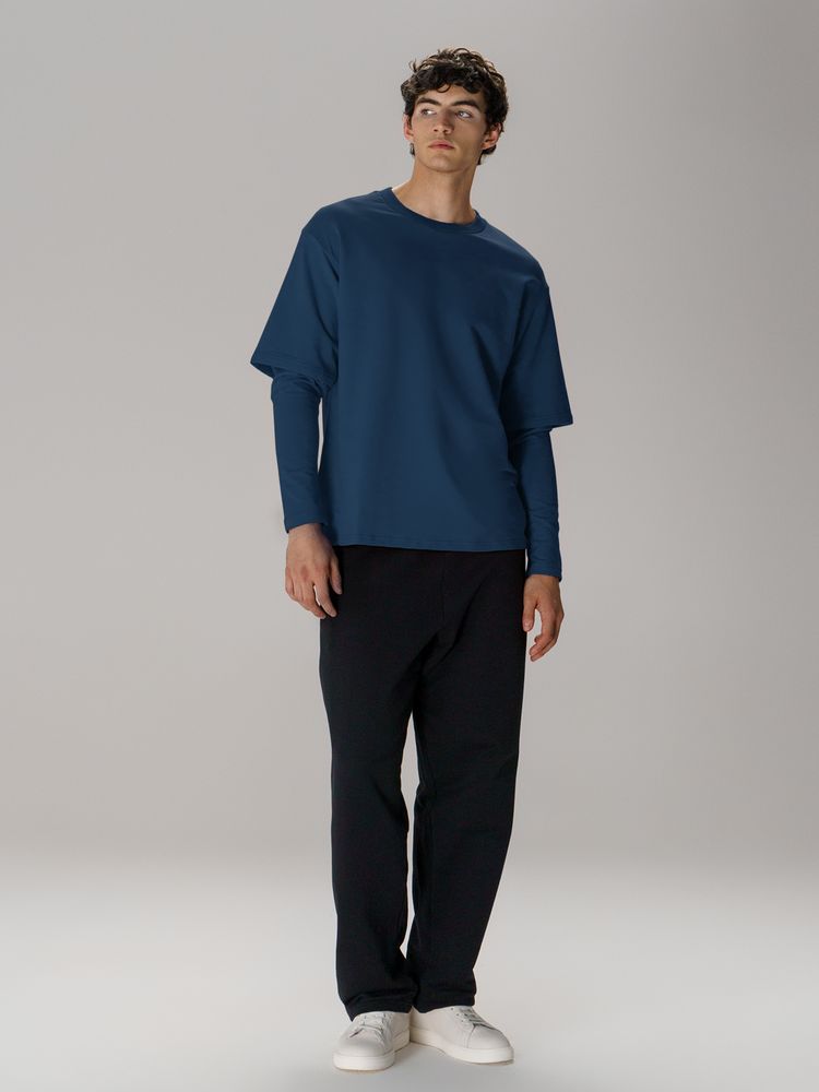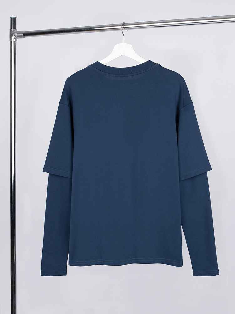 Футболка оверсайз с двойным рукавом Kosmos, темно-синяя, размер XL/XXL