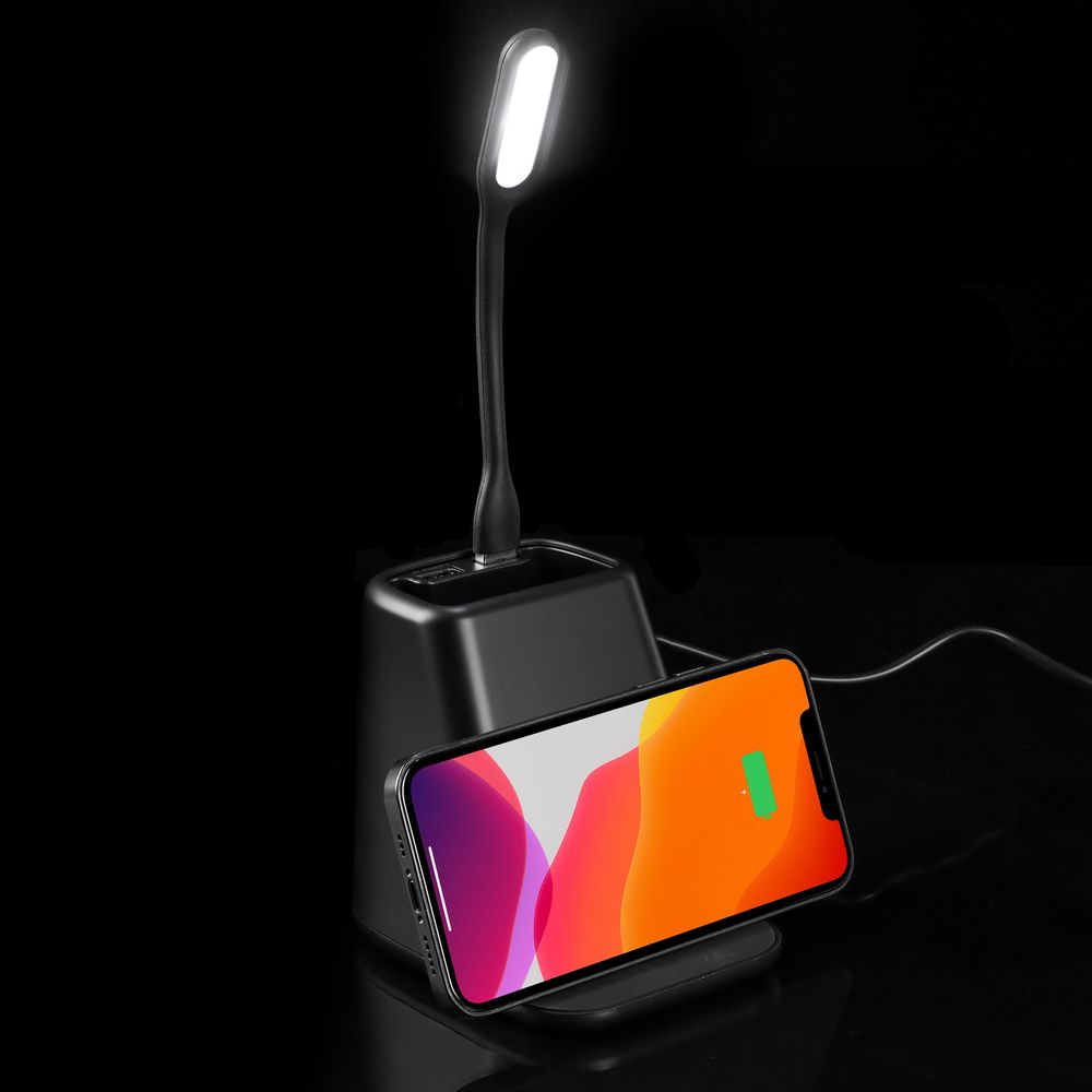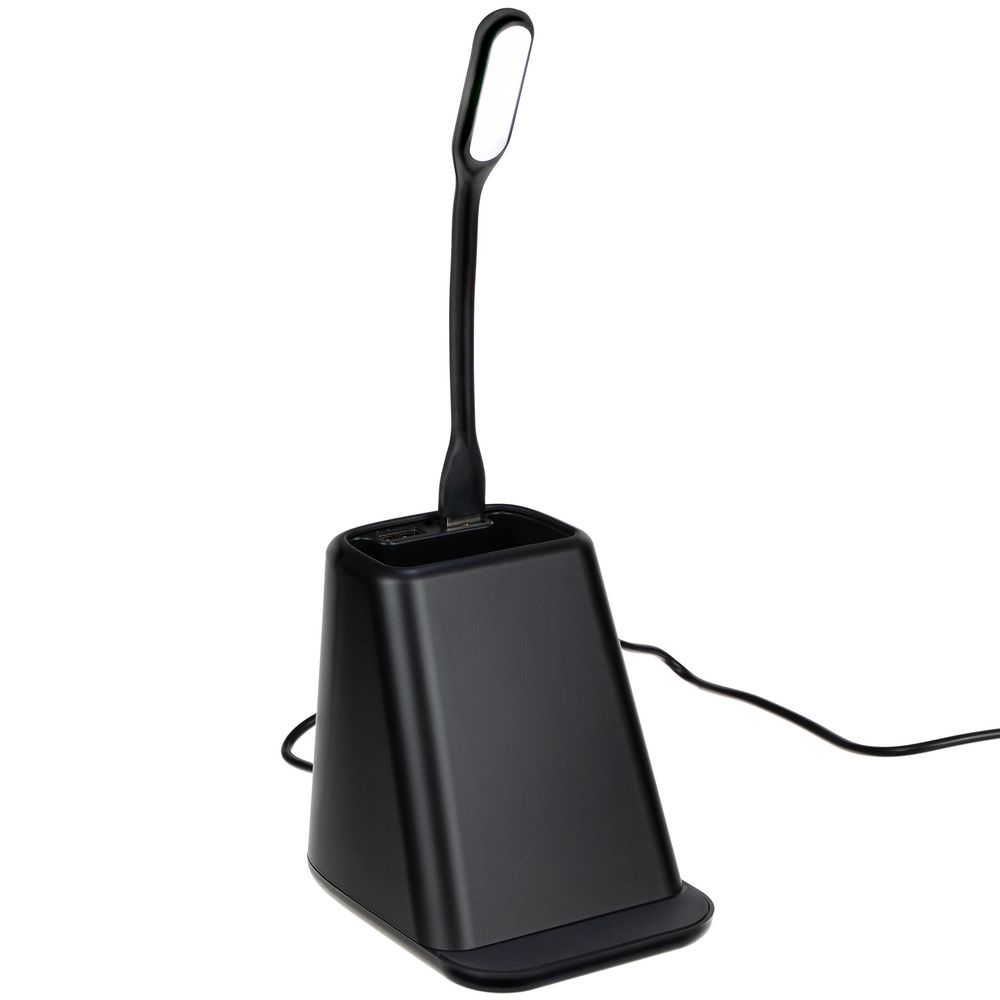 Настольный органайзер с зарядкой, лампой, вентилятором и подсветкой логотипа powerTower, черный
