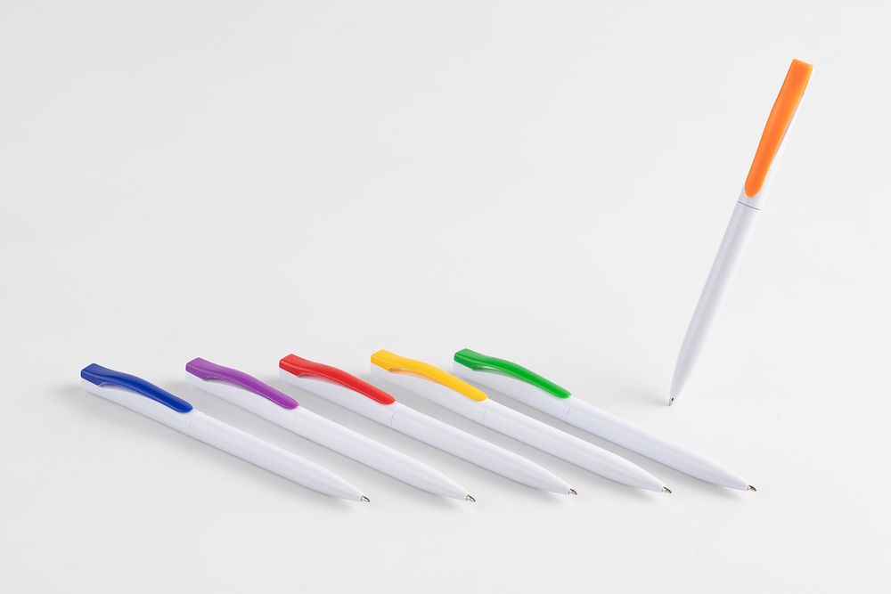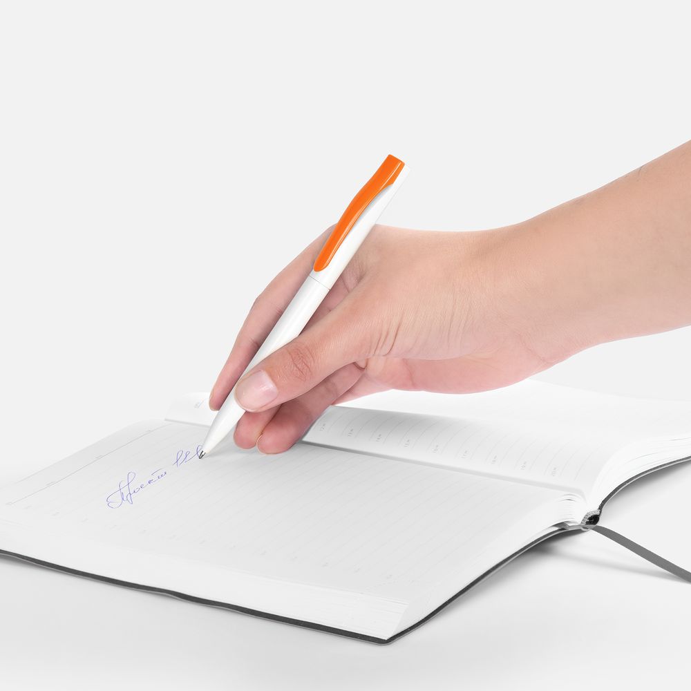 Ручка шариковая Pin, белая с оранжевым