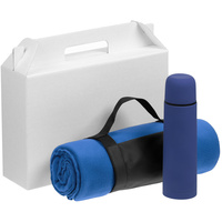 - Материал плед - флис, плотность 180 г/м²; термос - нержавеющая сталь, 304 внутри, 201 снаружи, пластик, покрытие софт-тач; коробка - микрогофрокартон
