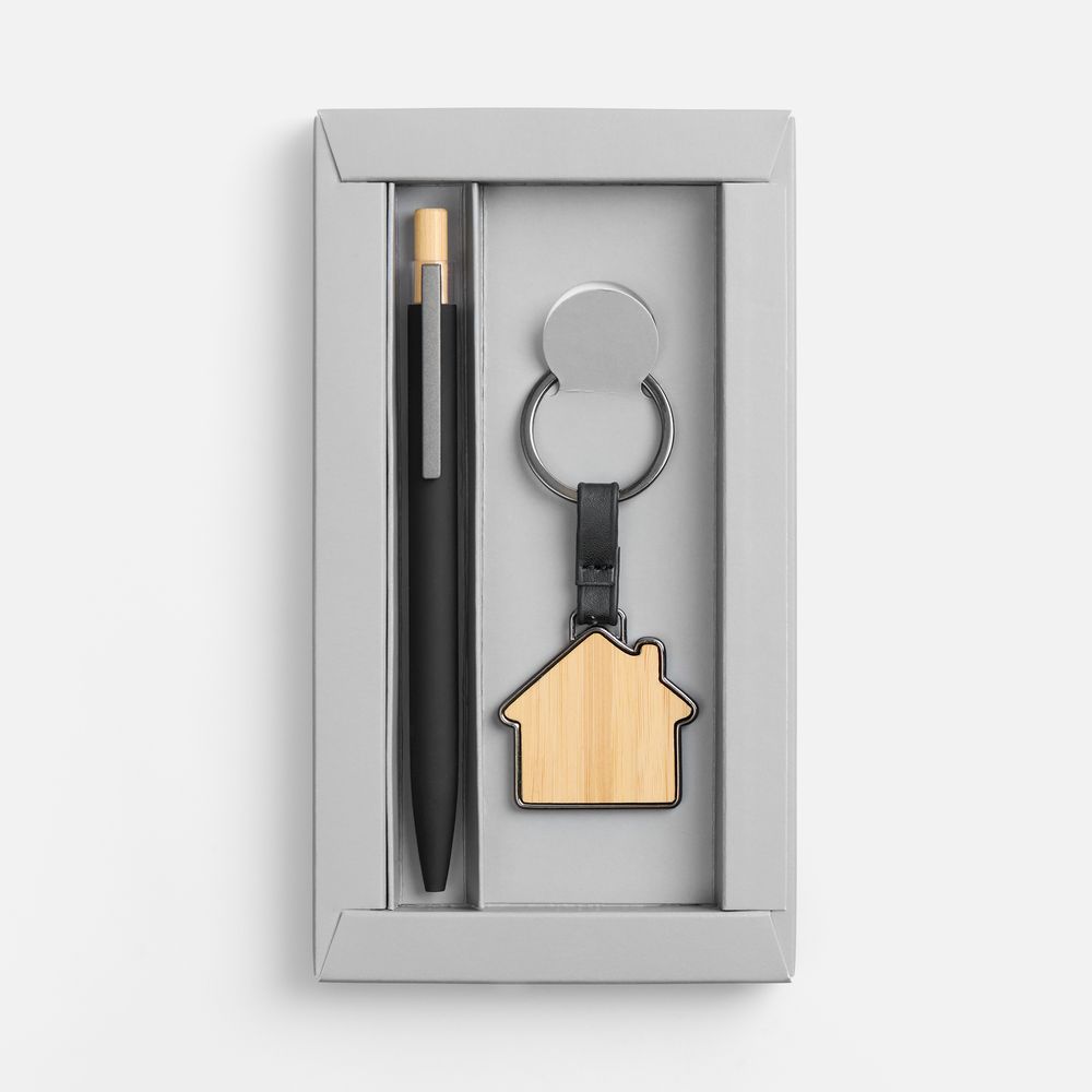 - Материал брелок - металл; бамбук; ручка - металл, алюминий, кнопка - бамбук; коробка - картон