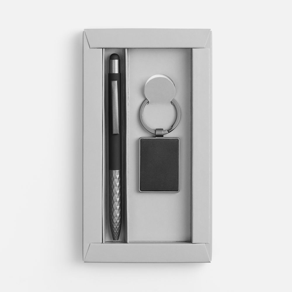 - Материал брелок - металл, полиуретан; ручка - металл; покрытие софт-тач; коробка - картон