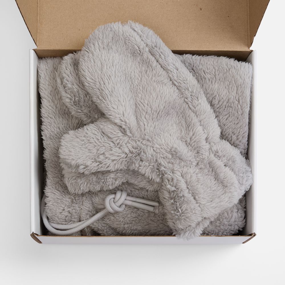 - Материал балаклава - полиэстер 100%, плотность 280 г/м², длинноворсовый флис; варежки - полиэстер 100%, плотность 280 г/м²; флис; коробка - микрогофрокартон, плотность 385 г/м²
