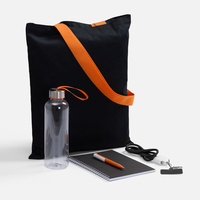 - Материал сумка - хлопок, 240 г/м²; ручки - полиэстер; кабель-ланьярд - нейлон, пластик; металл; бутылка - пластик, пищевой; крышка - металл, пластик; блокнот - бумага, картон; ручка - пластик