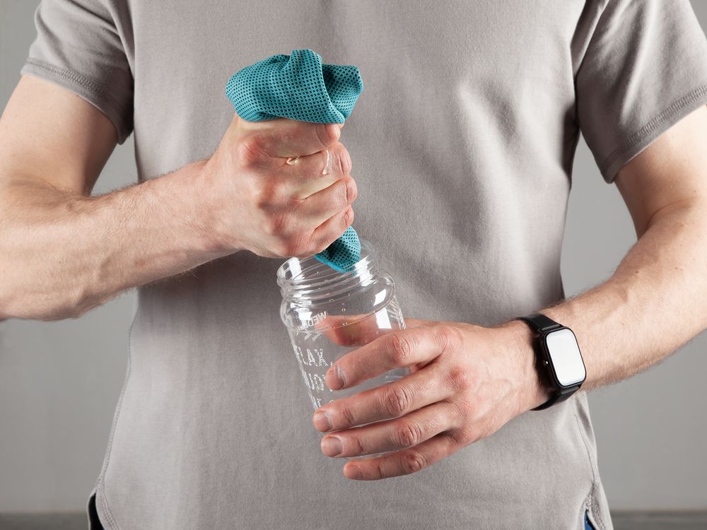 - Материал полотенце - полиэстер 100%; бутылка - пластик