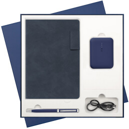 Подарочный набор Teolo, синий (ежедневник, ручка, аккумулятор)