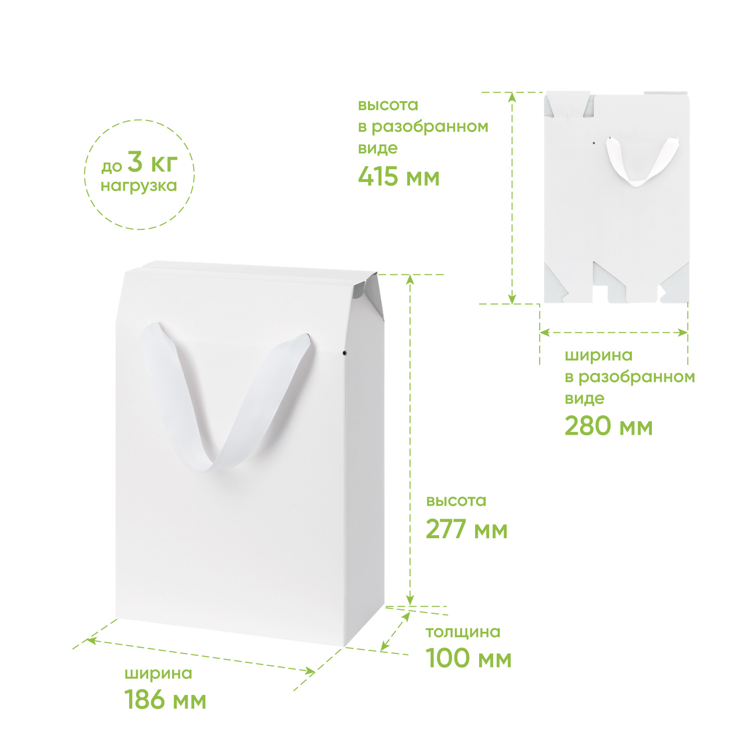 Подарочная коробка-пакет универсальная малая, белая
