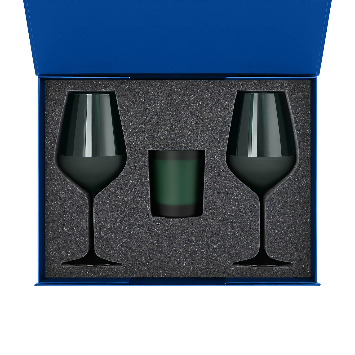 Подарочный набор свеча Enigma + 2 бокала для вина Emerald в синей коробке