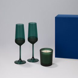 Подарочный набор свеча Enigma + 2 бокала для шампанского Emerald в синей коробке