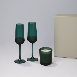 Подарочный набор свеча Enigma + 2 бокала для шампанского Emerald в серой коробке
