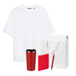 Набор с одеждой RUST (футболка, термокружка, ежедневник, ручка), красный/белый, M/L