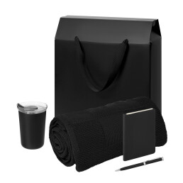 Подарочный набор Welcome Pack Spark mini, черный (термокружка, блокнот, ручка, плед, коробка-пакет)