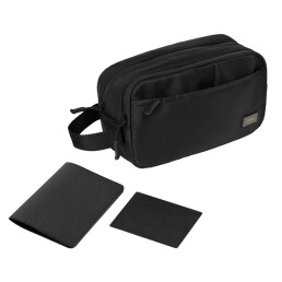 Подарочный набор Boston, черный (обложка на паспорт, картхолдер, дорожная косметичка)