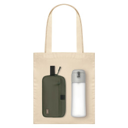Подарочный набор Boston, Capella, зеленый/серый (дорожная косметичка, бутылка, шоппер)