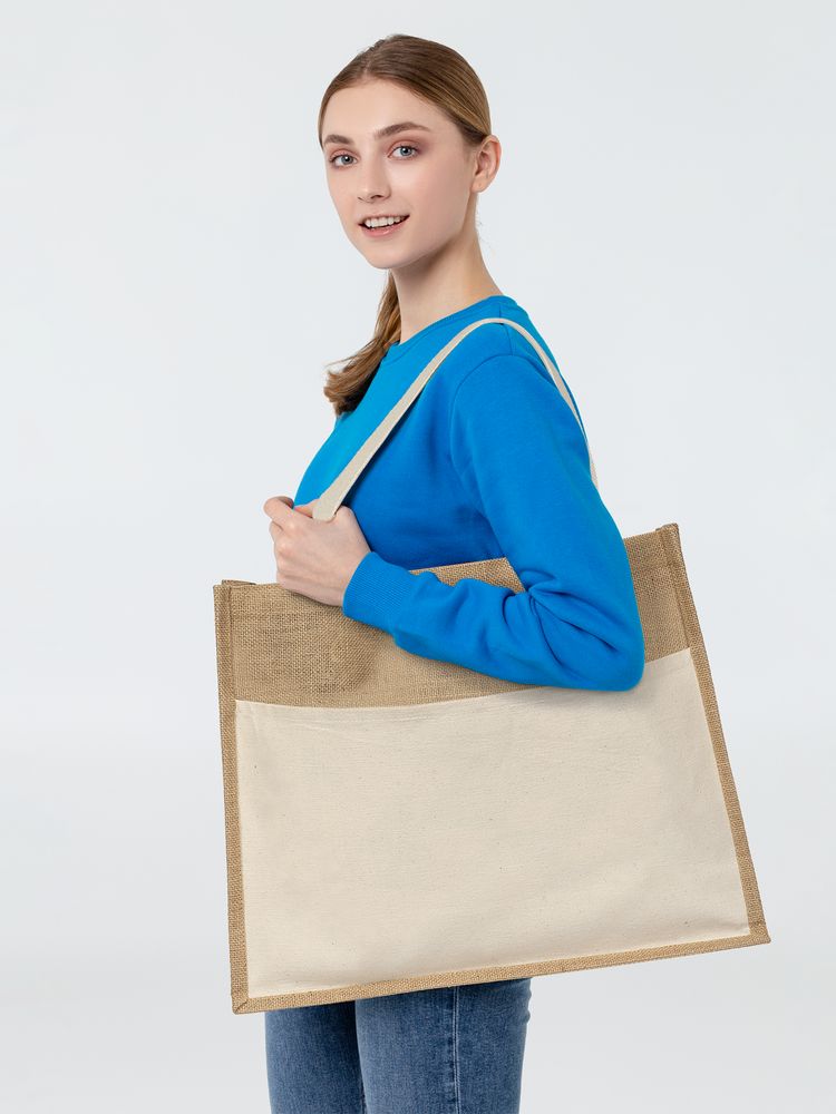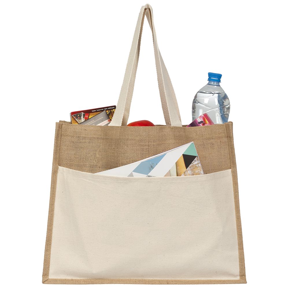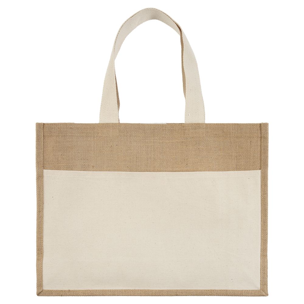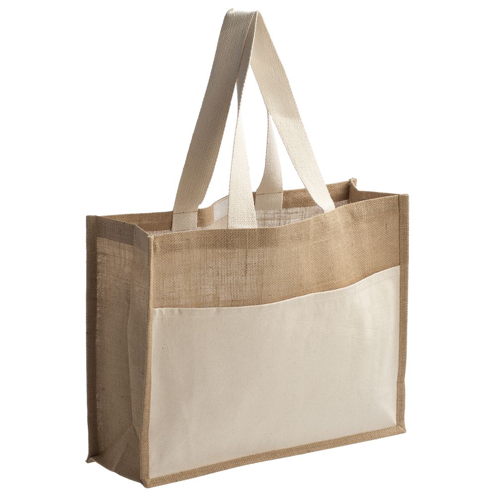 - Материал джут, плотность 240 г/м²; ручки, карман - хлопок 100%, плотность 280г/м²