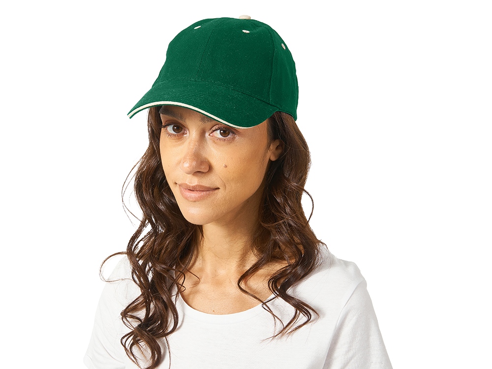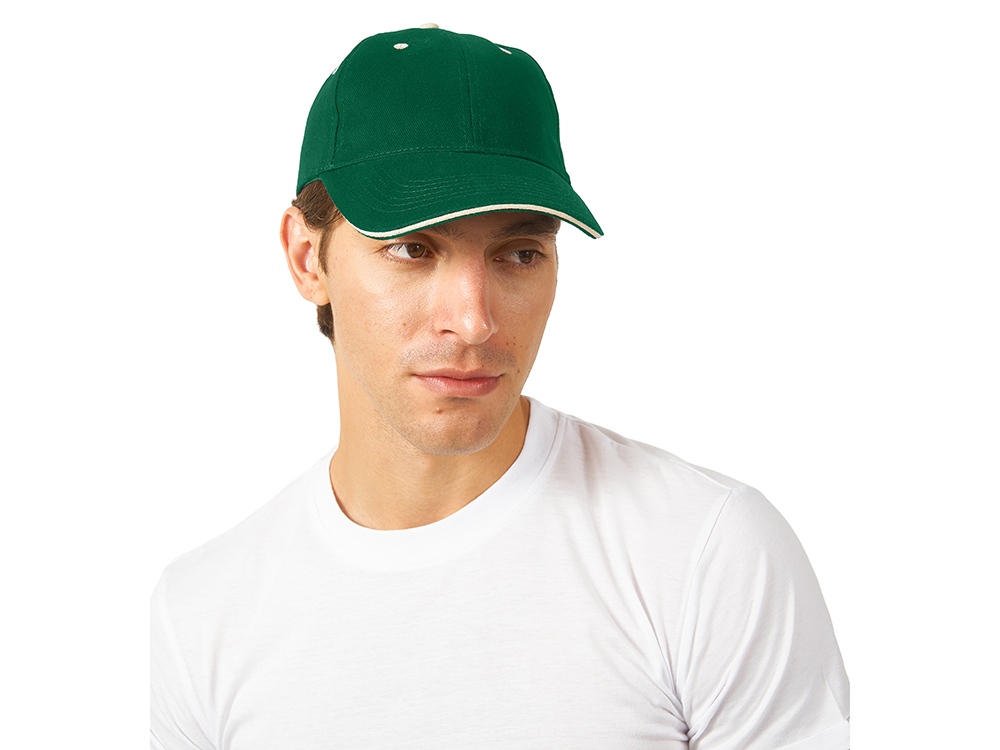 Бейсболка New Castle 6-ти панельная, зеленый/натуральный
