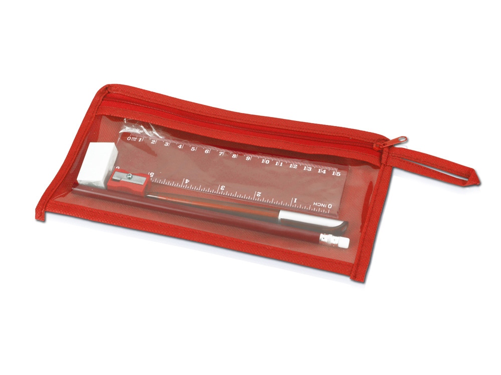 - Комплектность ручка шариковая, карандаш, точилка, ластик, линейка, чехол
