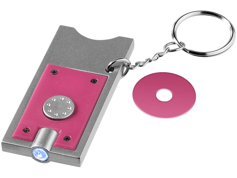 Брелок-держатель для монет Allegro с фонариком, фуксия/серебристый