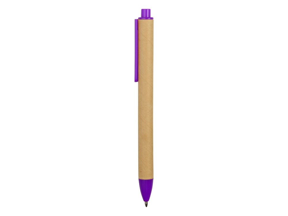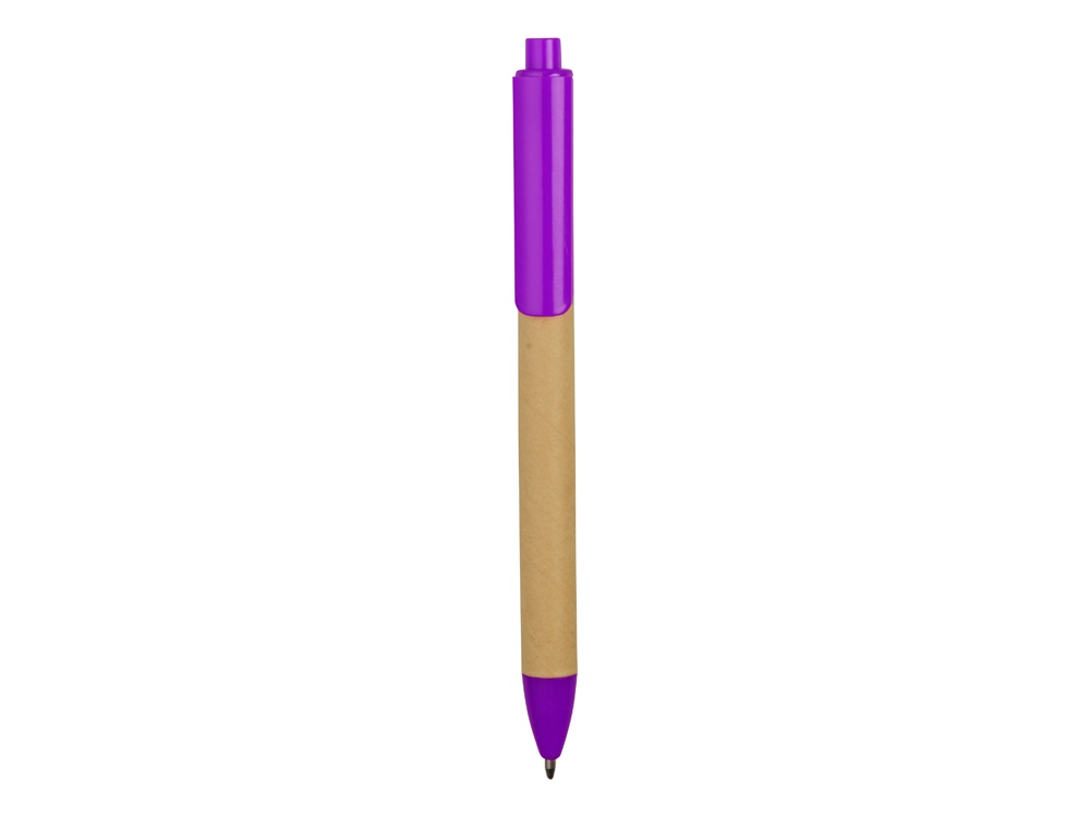 Ручка картонная пластиковая шариковая Эко 2.0, бежевый/фиолетовый