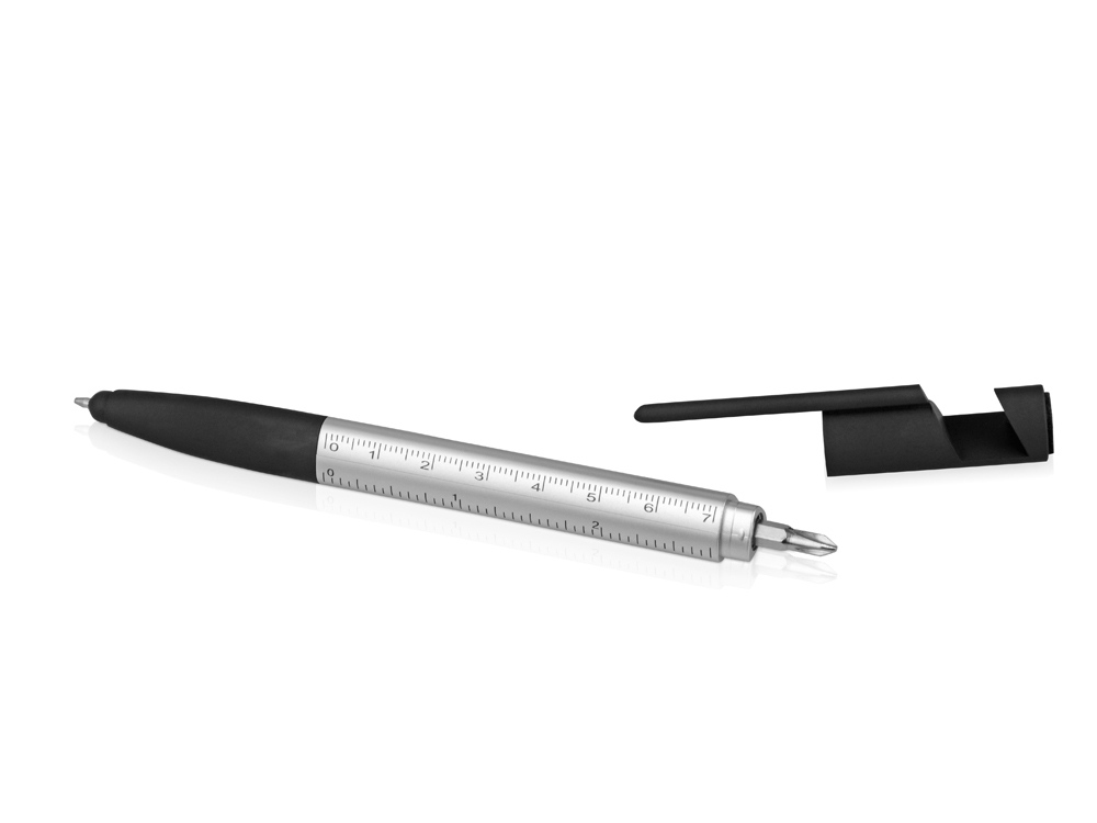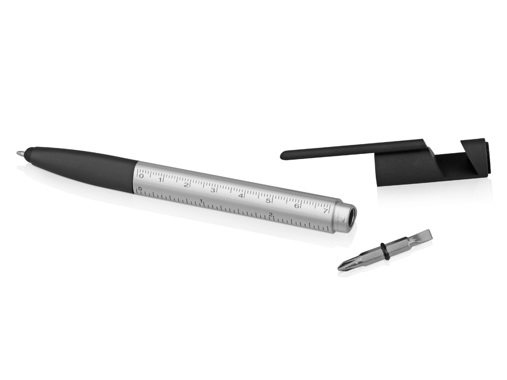 Ручка-стилус металлическая шариковая многофункциональная (6 функций) Multy, серебристый