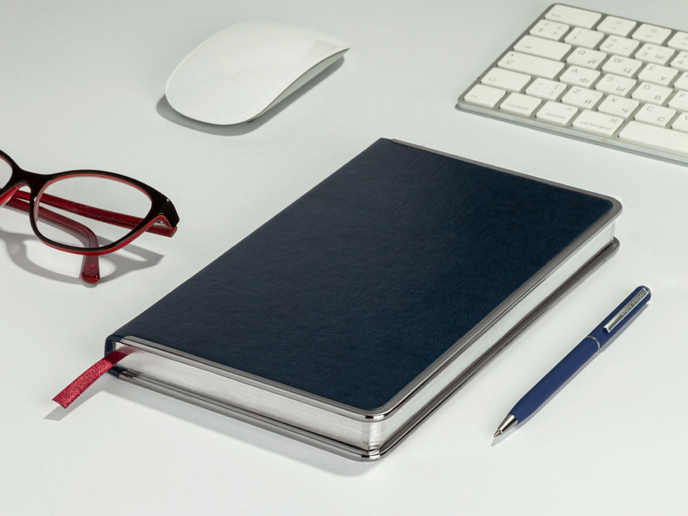Ежедневник А5 недатированный Chelsea, синий (серебристый кант и срез)