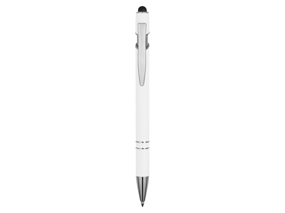 Ручка металлическая soft-touch шариковая со стилусом Sway, белый/серебристый