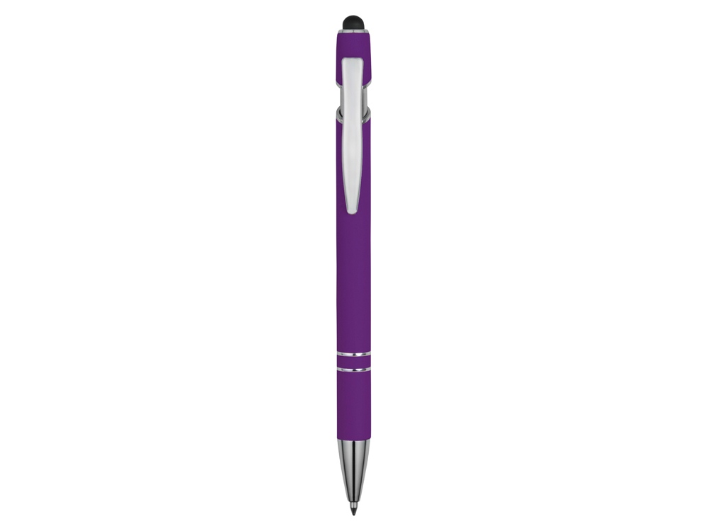 Ручка металлическая soft-touch шариковая со стилусом Sway, фиолетовый/серебристый
