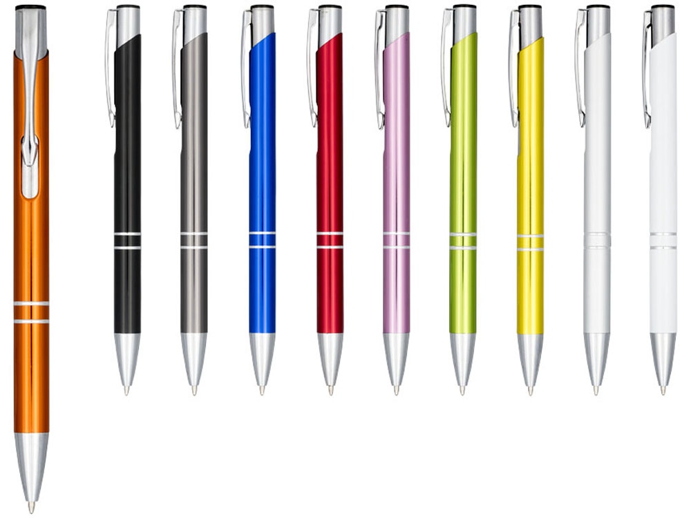 Кнопочная шариковая ручка Moneta из анодированного алюминия, синие чернила, серебристый