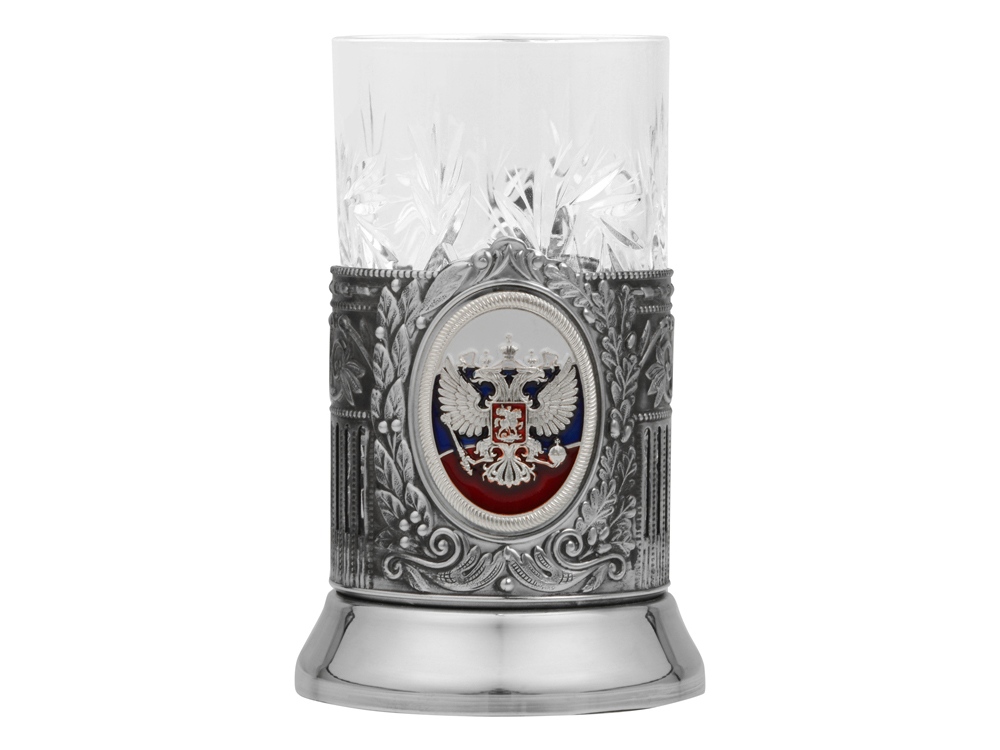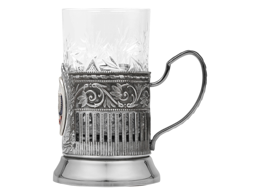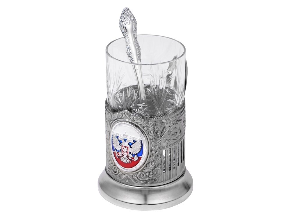 Подстаканник с хрустальным стаканом и ложкой РОССИЙСКИЙ-М, серебристый/прозрачный