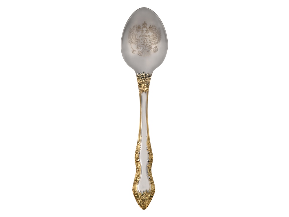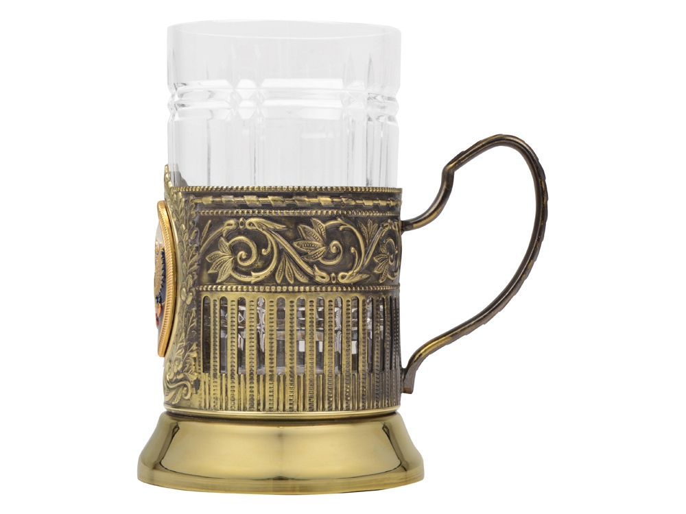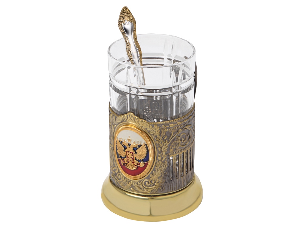 Подстаканник с хрустальным стаканом и ложкой РОССИЙСКИЙ-Л, золотистый/прозрачный