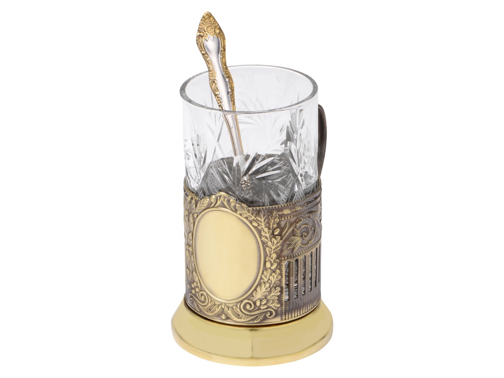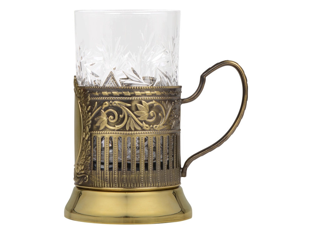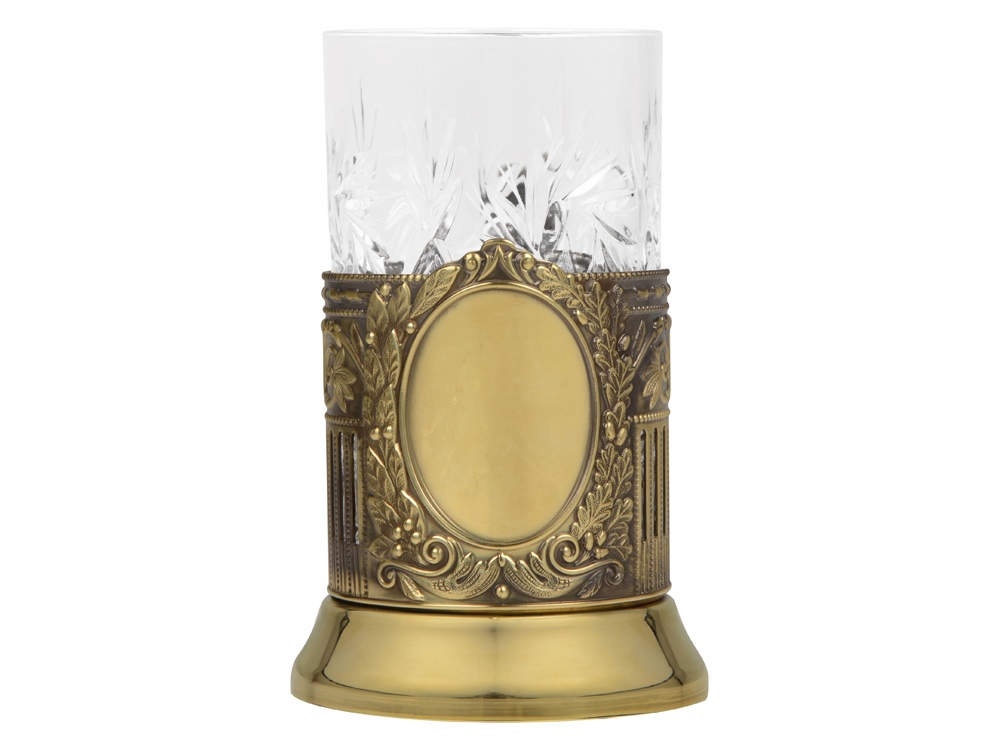 Подстаканник с хрустальным стаканом Базовый-Л, золотистый/прозрачный
