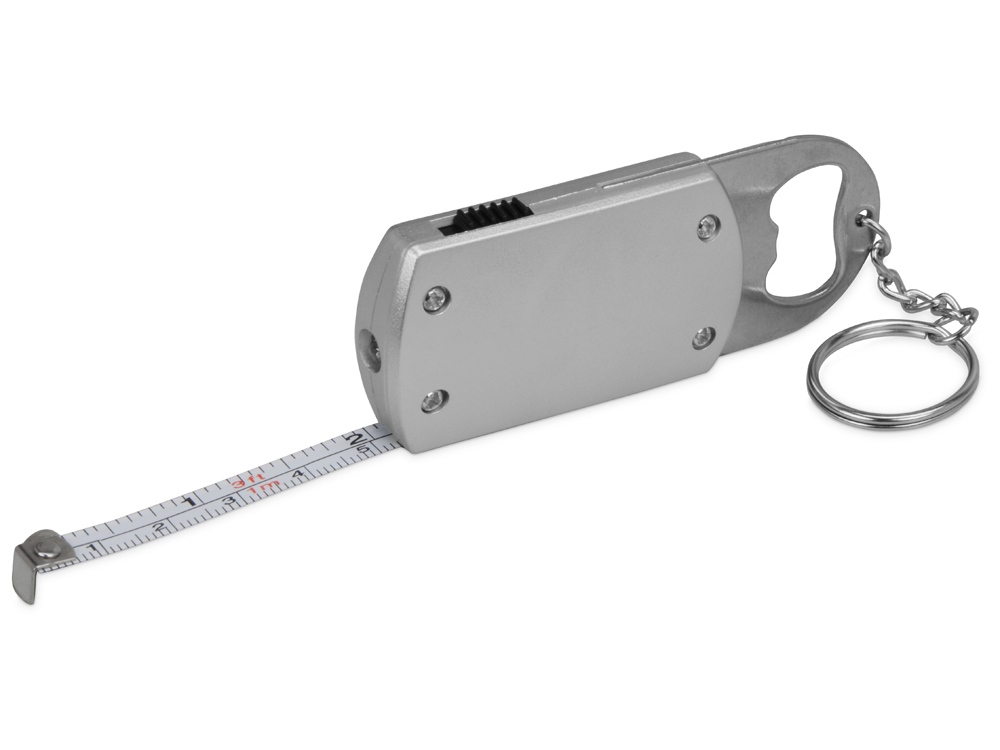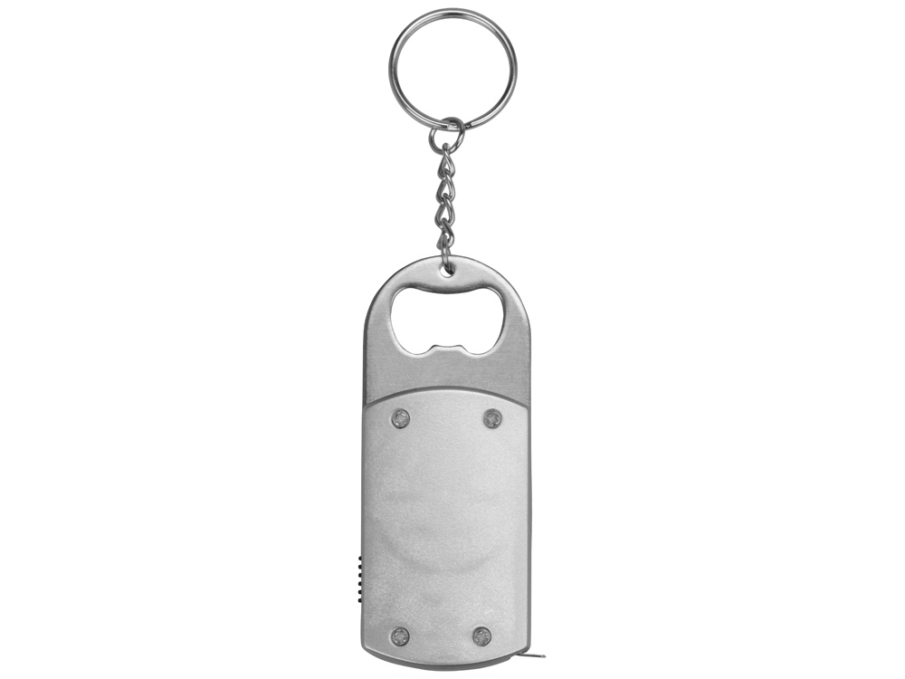 Брелок-открывалка с рулеткой и фонариком Open, серебристый