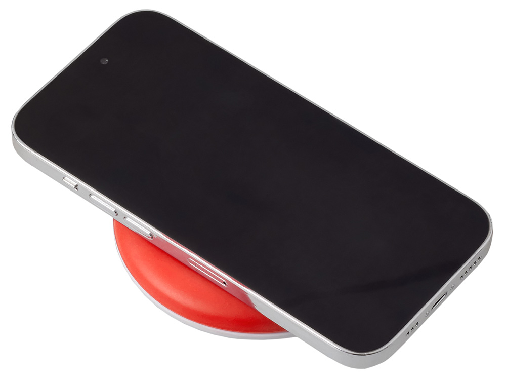 Беспроводное зарядное устройство со встроенным кабелем 2-в-1 Disc, красный