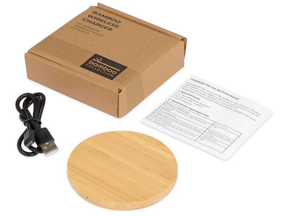 Беспроводное зарядное устройство из бамбука Cap, натуральный