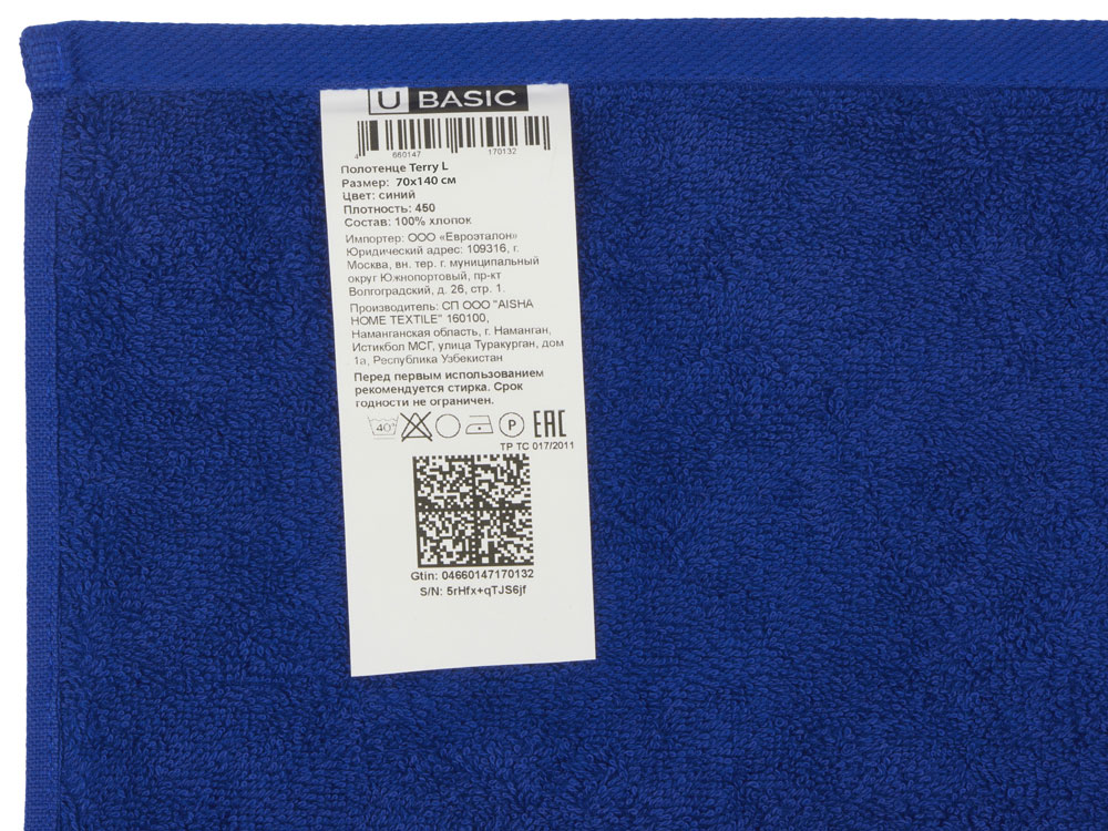 Полотенце Terry L, 450, синий