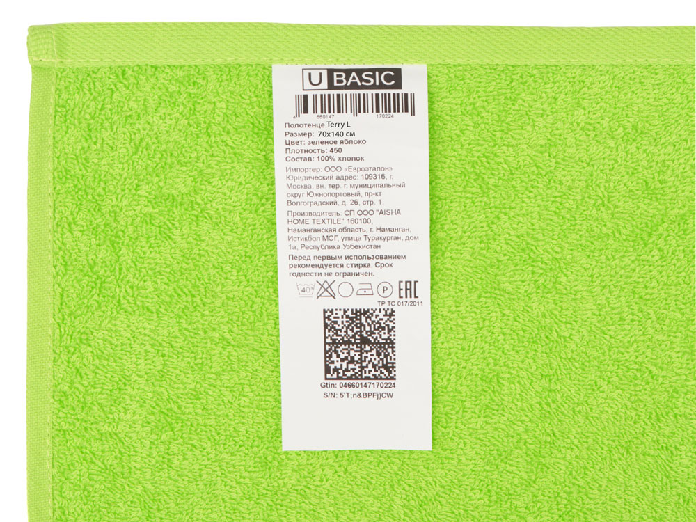 Полотенце Terry L, 450, зеленое яблоко