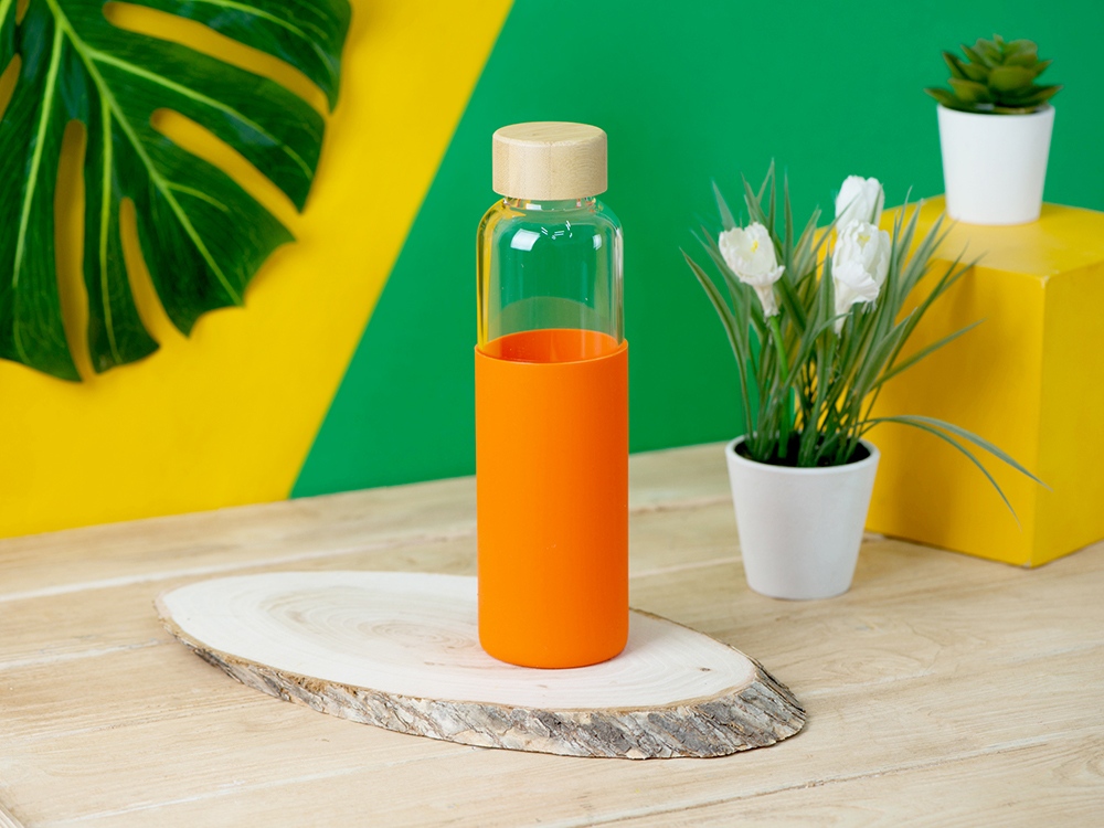Бутылка для воды стеклянная Refine, в чехле, 550 мл, оранжевый