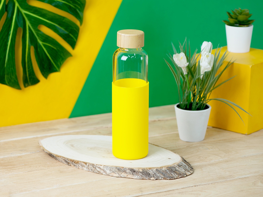 Бутылка для воды стеклянная Refine, в чехле, 550 мл, желтый