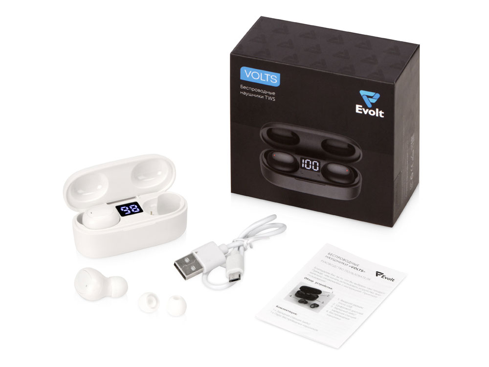 Беспроводные наушники TWS в кейсе Volts. Evolt, белый, пластик